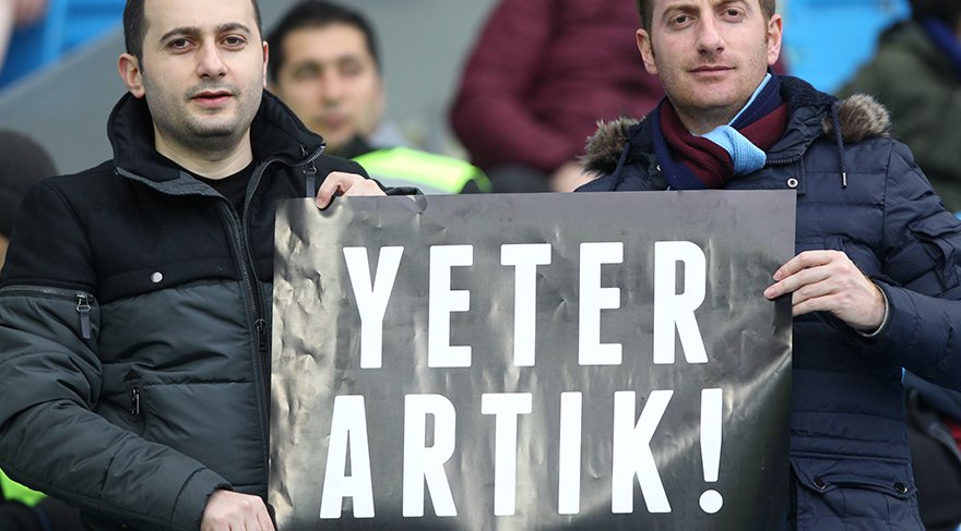 Trabzonspor taraftarları, son haftalarda verilen hakem kararlarına protesto ederken ”Yeter artık” kartonlarını çıkardılar.
