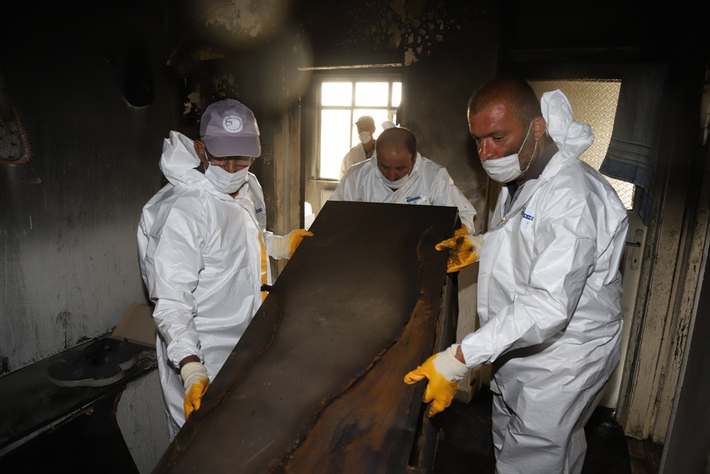 Meydana gelen üzücü olayın olumsuz etkilerini en aza indirgemek ve ailenin yaralarını bir nebze de olsa sarabilmek amacı ile maddi hasara neden olan yangının ardından harekete geçen ekipler, zarar görmüş eşyaların tahliye işlemlerini titizlikle gerçekleştirdi.