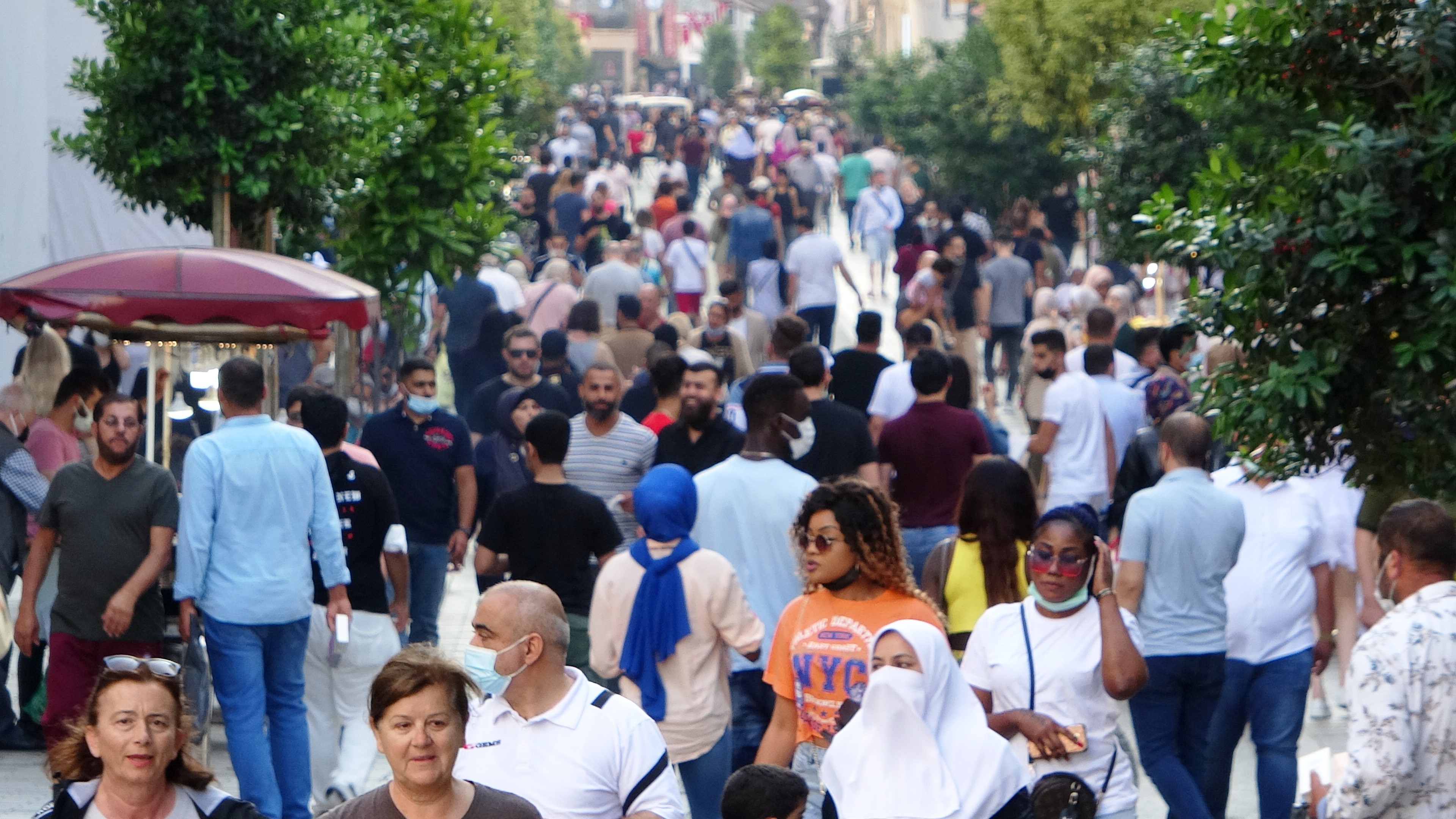 İstiklal Caddesi'ndeki turist yoğunluğu akıllara “İğne atsan yere düşmez” deyimini getirdi. Öte yandan caddede bulunanların çoğunluğunun maske takmadığı, maskesi olanların da ağzı yerine koluna taktığı görüldü.