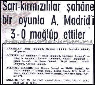 Tam 50 yıl önce bugün oynanan, Türkiye'nin, "Bombacı" Halil Kiraz’ın adını duyuran maçtır da 3-0’lık Atletico Madrid maçı…