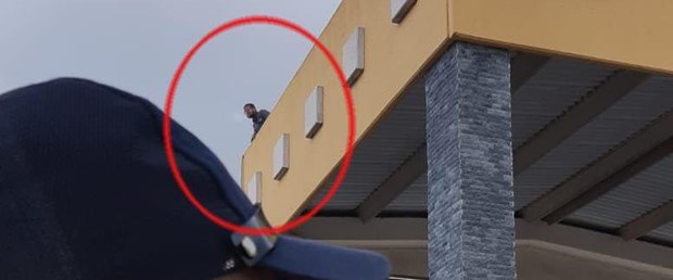 İhbar üzerine adrese polis, itfaiye ve sağlık ekipleri sevk edildi. İtfaiye aracındaki yangın merdiveni ile yukarıya çıkan bir polis memuru, isminin Ömer E. (31) olduğunu öğrendiği kişiyi, ikna etmek için çalışma başlatırken, itfaiye ekipleri de binanın altına branda açarak önlem aldı.