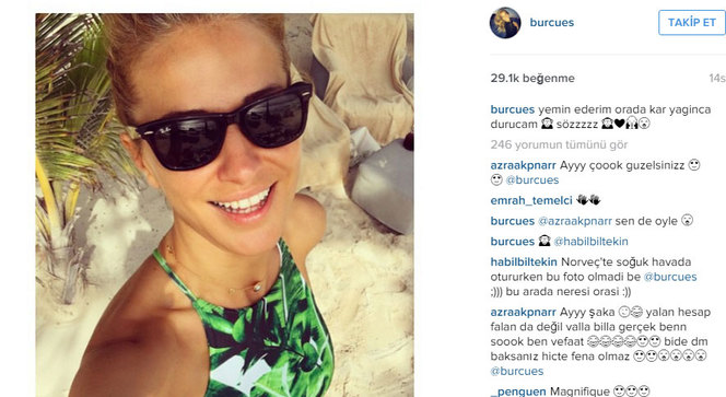 Ünlü sunucu Burcu Esmersoy soğuk kış günlerine rağmen yaz tatili yapmaya devam ediyor.