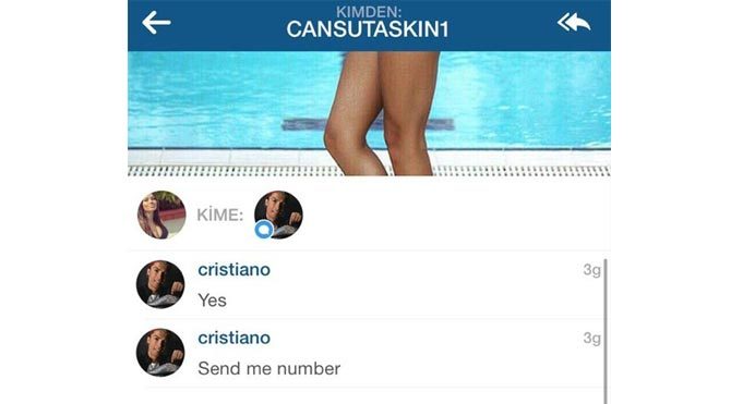 27 milyon takipçisi olan Ronaldo, kendi hesabından Cansu Taşkın’a mesajlar gönderip iltifatlar yağdırdı.