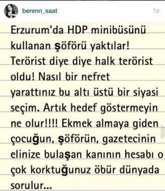 Tüm bu yaşananlara, kayınvalide Serpil Doğulu da dahil olmuş. Serpil Hanım, sosyal medyadan siyasi paylaşımlar yapan gelinini, “Yazdığın kelimeler ve yaptığın sert çıkışlar oğullarım ve torunlarım da dahil tüm aileye zarar verecek” sözleriyle uyarmış. Beren Saat’in paylaşımlarına devam etmesi üzerine, hem Serpil hem de Ece Doğulu, güzel oyuncuyla aralarına mesafe koymuş. Bu arada Beren Saat’in instagram hesabından kayınvalidesini takip etmemesi iddiaları güçlendiriyor.