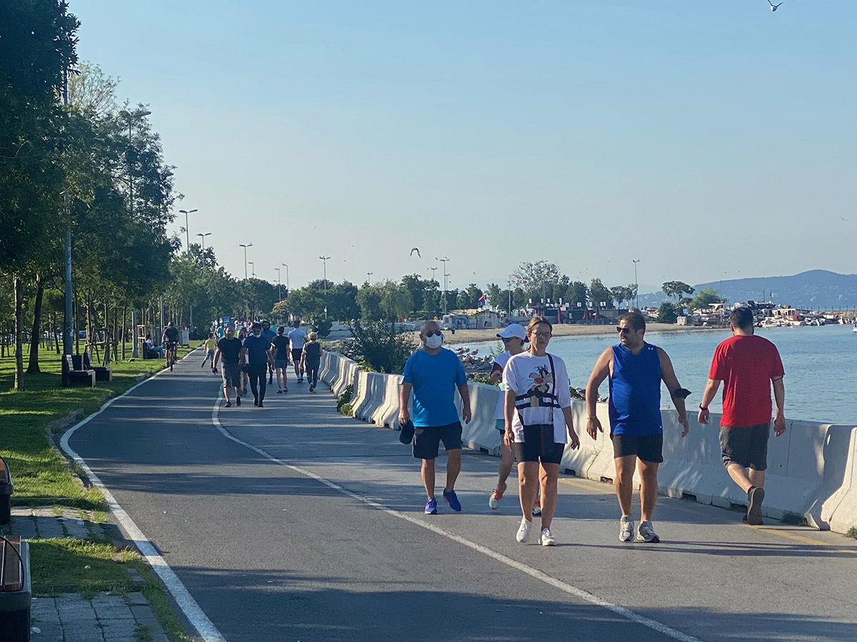 Kısıtlamanın uygulanmadığı ilk pazar gününde vatandaşlar, sabahın erken saatlerinden itibaren Kadıköy Caddebostan Sahili'ne akın etti.