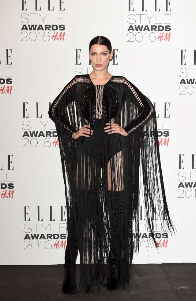 Ünlüler dünyasından pek çok ismin katıldığı ödül gecesine, Bella Hadid damgasını vurdu. 19 yaşındaki güzel model Bella Hadid, geceye bol dekolteli, siyah ve sezonun modası püskül detaylı bir elbiseyle katıldı.