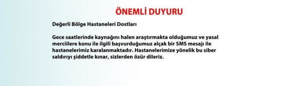 Mesajda ağır küfürler yer aldı. Bir anda sosyal medyaya da düşen mesaj üzerine hastane yönetimi bir açıklama yaptı. Açıklamada, hastalara giden mesajın kendileri tarafından gönderilmediği, sistemin hacklendiği belirtilerek, özür dilendi. Hastane yönetimi olayla ilgili soruşturma açıldığını da bildirdi.