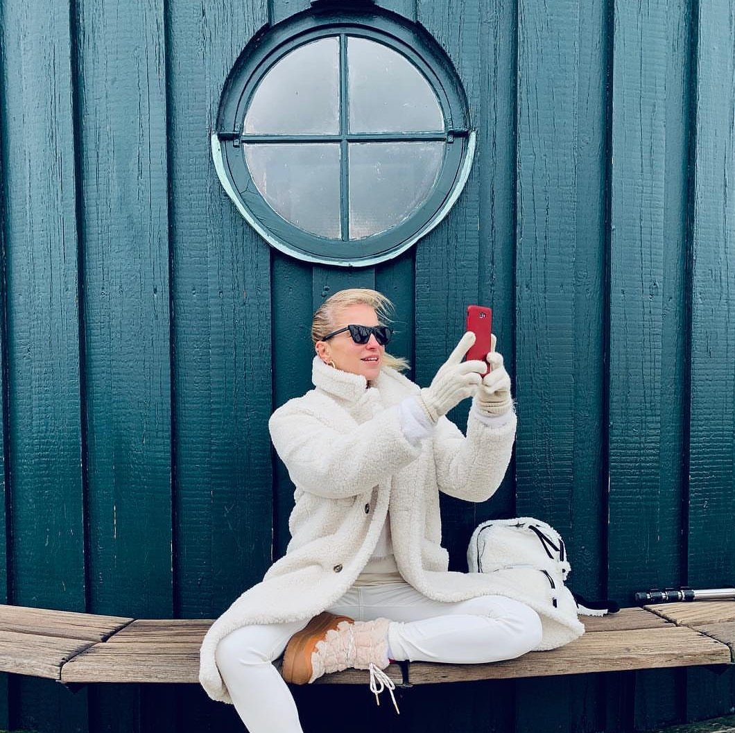 Tamamen beyazlar içinde sokağa çıkan Burcu Esmersoy, sezonun trendi beyaz Mango kabanı, Tory Burch tüylü botları, AllSaints marka jean, beyaz eldivenler ve beyaz boğazlı kazağıyla oldukça şık bir görünüm elde etmiş.