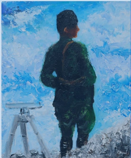 Yedinci Cumhurbaşkanı Kenan Evren'in bir kitabındaki 'Sigara İçen İhtiyar' fotoğrafını izinsiz olarak yağlıboya tablosuna aktardığını gördü Otyam...